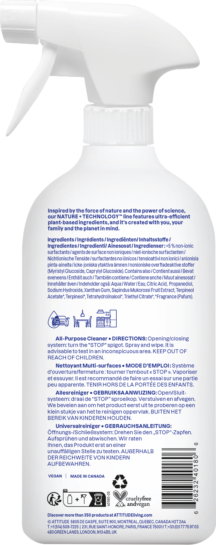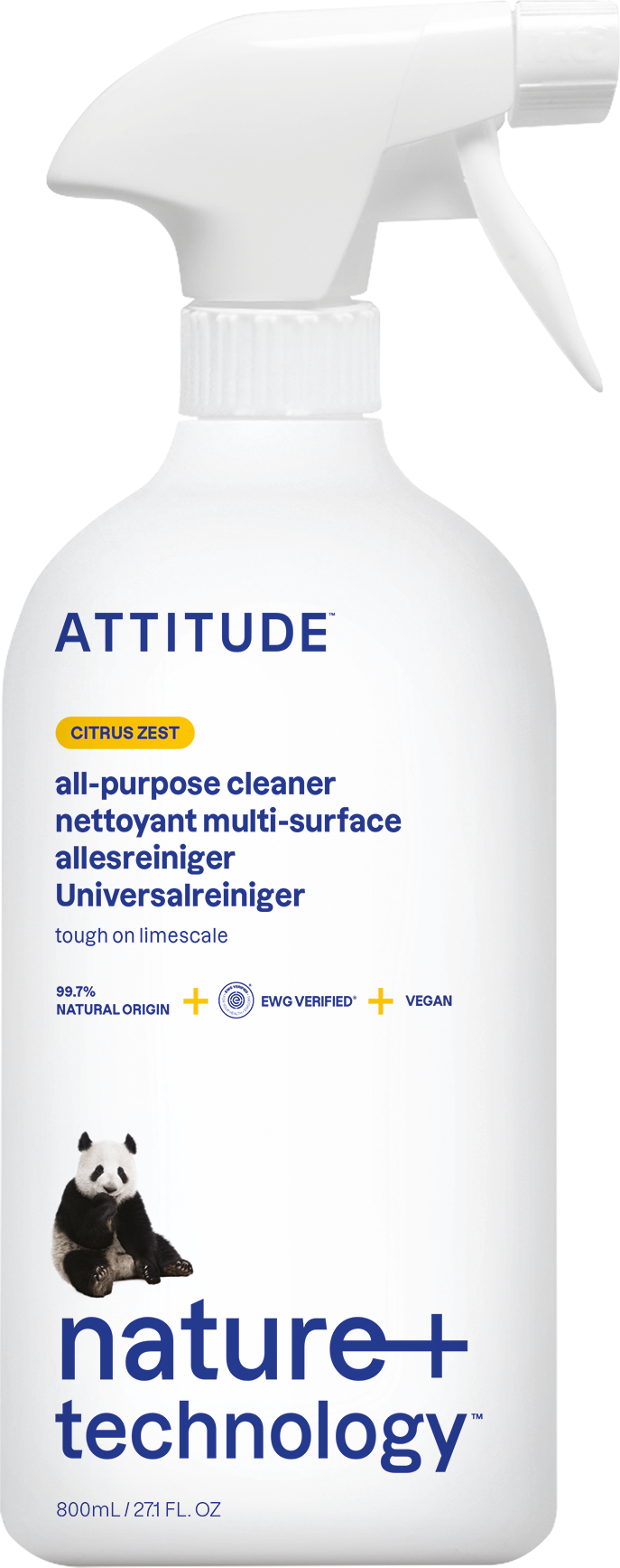 Der Universalreiniger von ATTITUDE reinigt auf Basis von natürlichen Inhaltsstoffen Oberflächen im gesamten Haushalt.