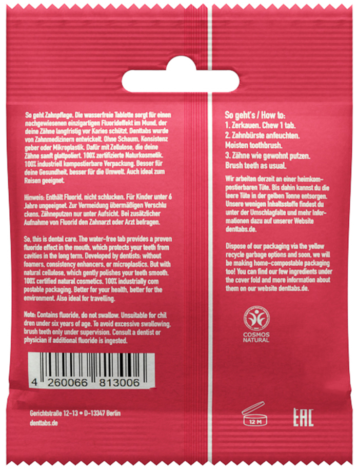 Erfahrungsberichte in Deutsch für Denttabs Zahnputztabletten Strawberry mit Fluorid
