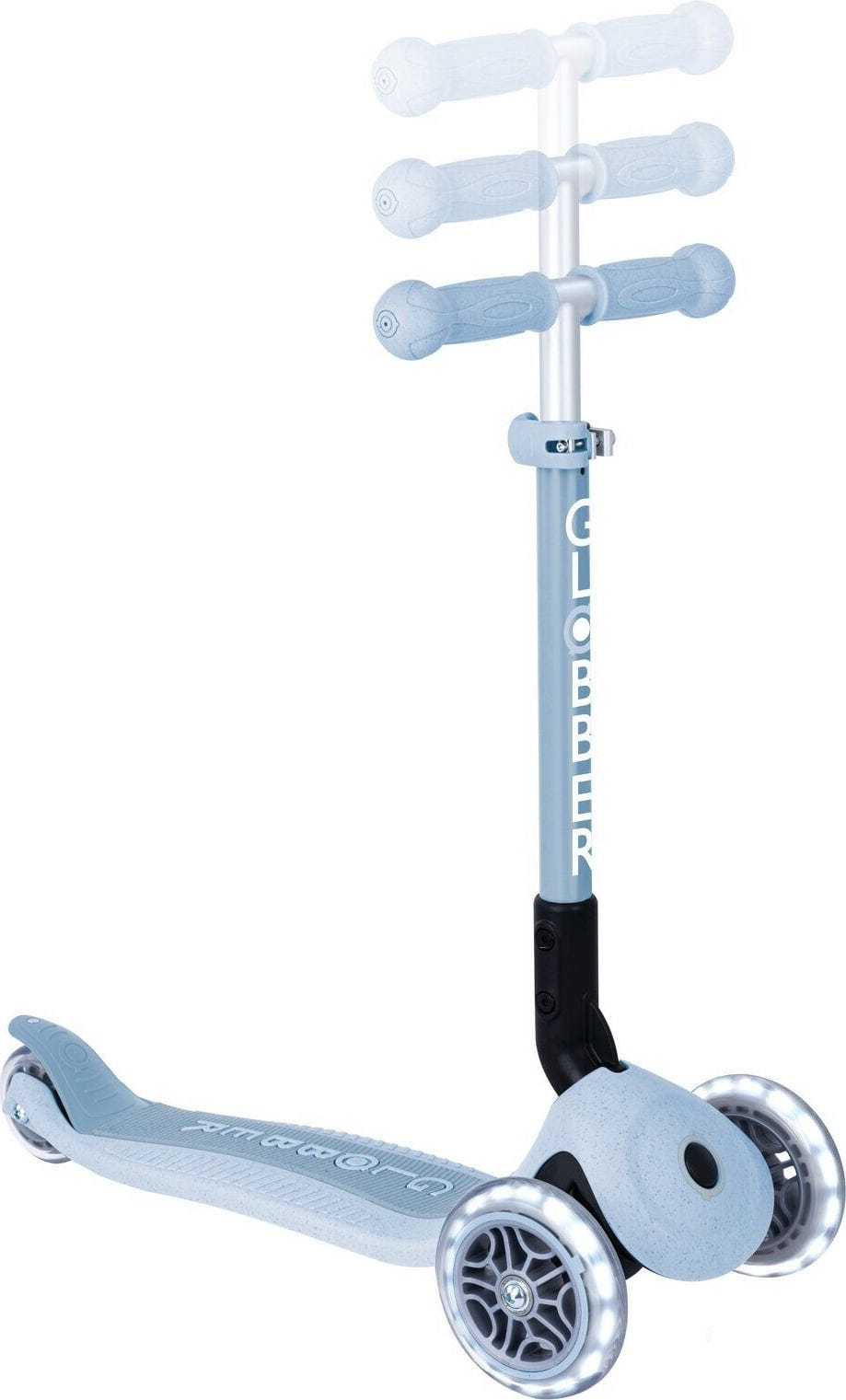 Der Junior Foldable Lights Eco verbindet Sicherheit mit Umweltbewusstsein. Hergestellt aus recycelten Materialien, bietet er schon ab 2 Jahren eine stabile Möglichkeit, Mobilität zu üben – mit zusätzlichem Spaß durch LED-Licht an den Rädern.