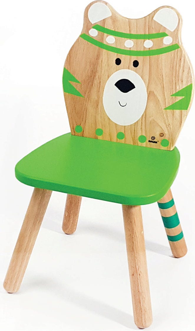 Bärig guter Kinderstuhl, der sofort ein Lächeln ins Gesicht zaubert. Er besteht aus 6 massiven Gummibaumholz-Teilen, die im Nu zusammengesetzt sind. Tolle Farben und Elemente in Holzoptik machen den Stuhl zu einer schönen Ergänzung im Kinderzimmer.